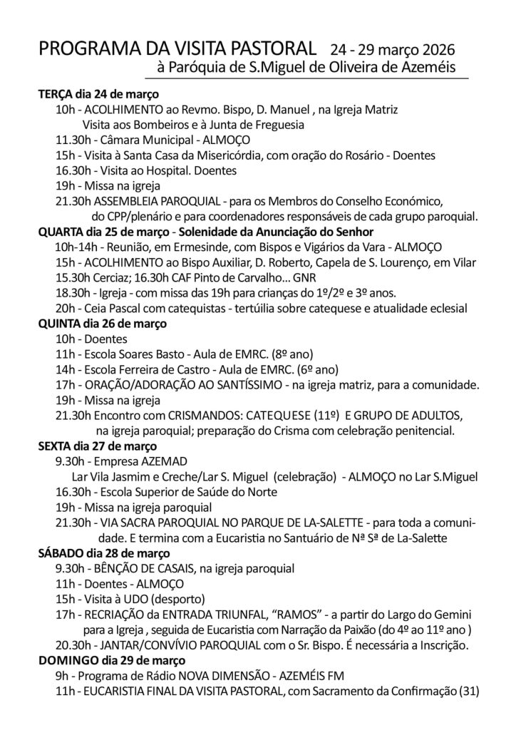 Visita Pastoral, Paróquia de Oliveira de Azeméis